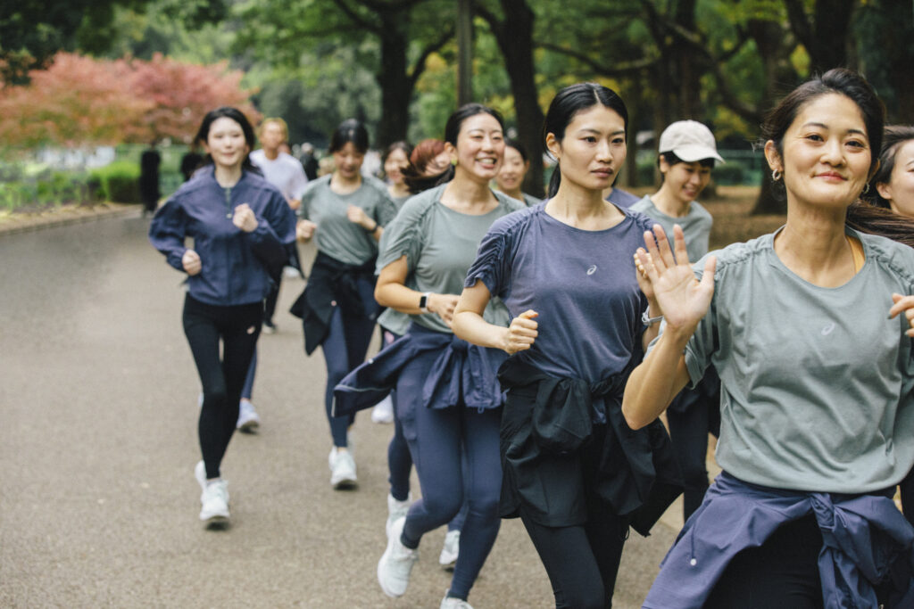 今回のイベントでは、参加者全員がアシックス「NAGINOコレクション」の新作ウエアを着用。