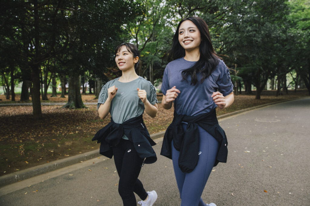 ランニング初心者ながらも、「楽しく走れました!」と話す石垣さんと、平田さん。ランニングシーンでも着用したウエアやシューズの魅力を実感したようです。